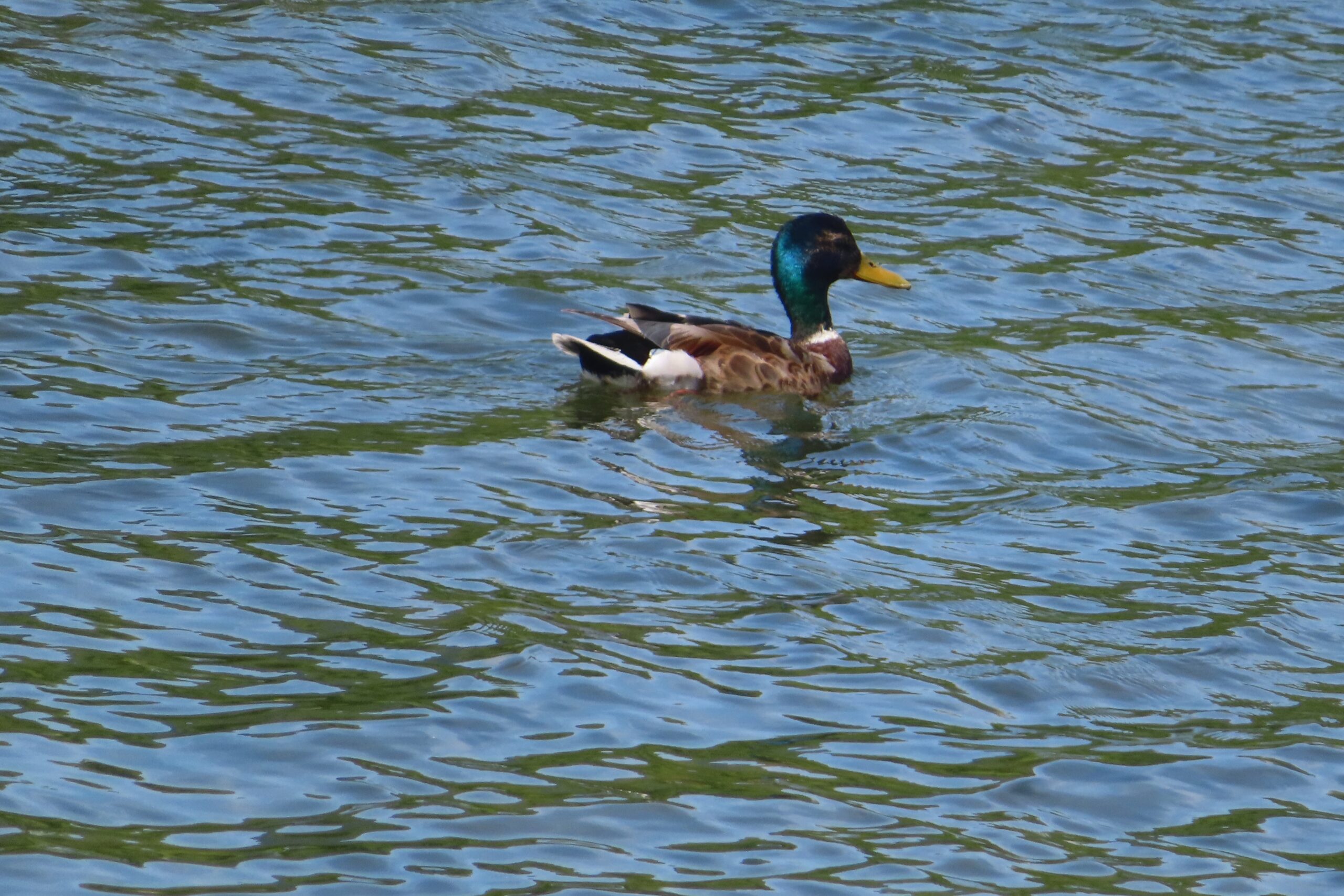 川に行ってカモ見をしているのは日常です。今は留鳥のカルガモと居残り組のマガモ(多分7~8羽 写真の他に2羽でいるオスのマガモとツガイと1羽?)が中心です。カルガモは子育て、マガモはこの酷暑の中でよく頑張っていると思います。